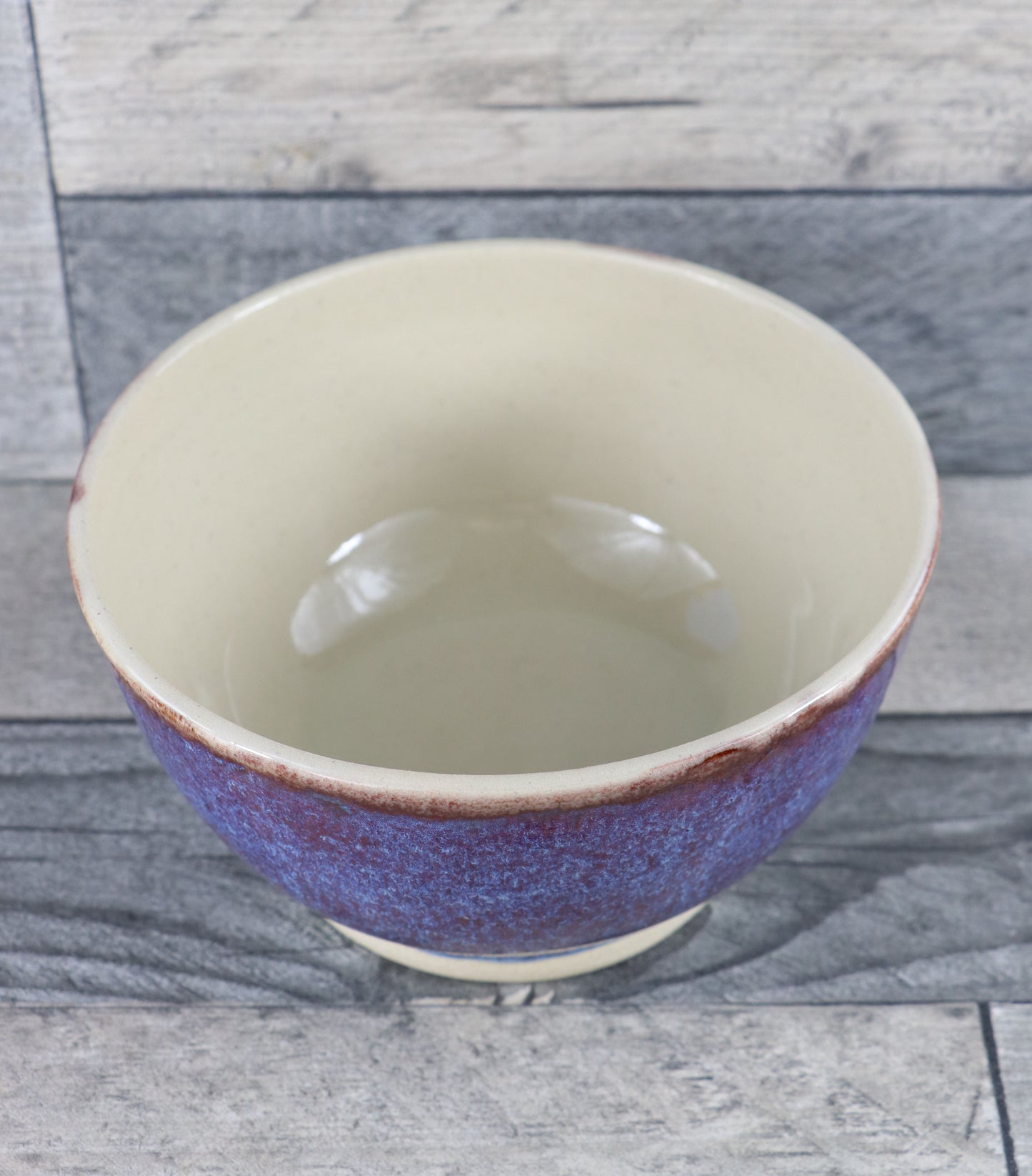 The exterior of the bowl may exhibit subtle variations in texture, which are characteristic of handmade ceramics.